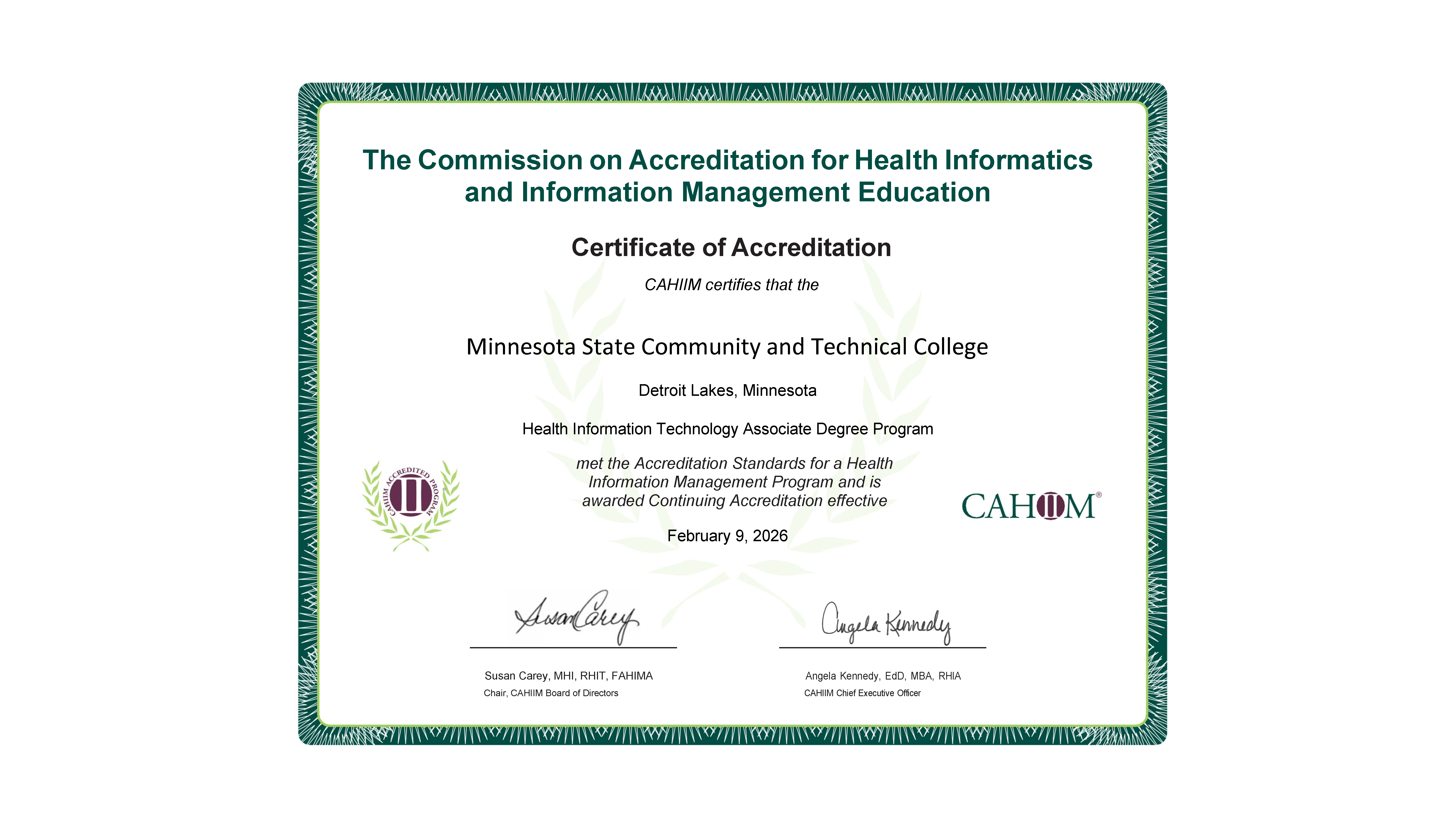 Following a comprehensive review, CAHIIM confirmed that the M State program continues to meet national accreditation standards and commended the program for its leadership and innovation in health information management education. The M State program is one of just 31 higher education institutions across the nation listed as a Program of Distinction on the CAHIIM website.